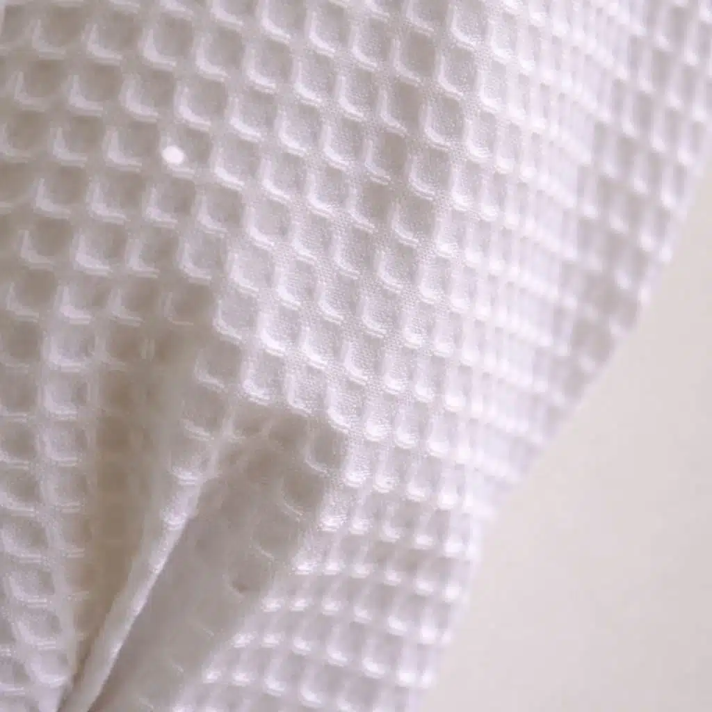 Tissage structuré en relief formant de petites alvéoles qui favorisent la circulation de l’air et optimisent l’absorption.